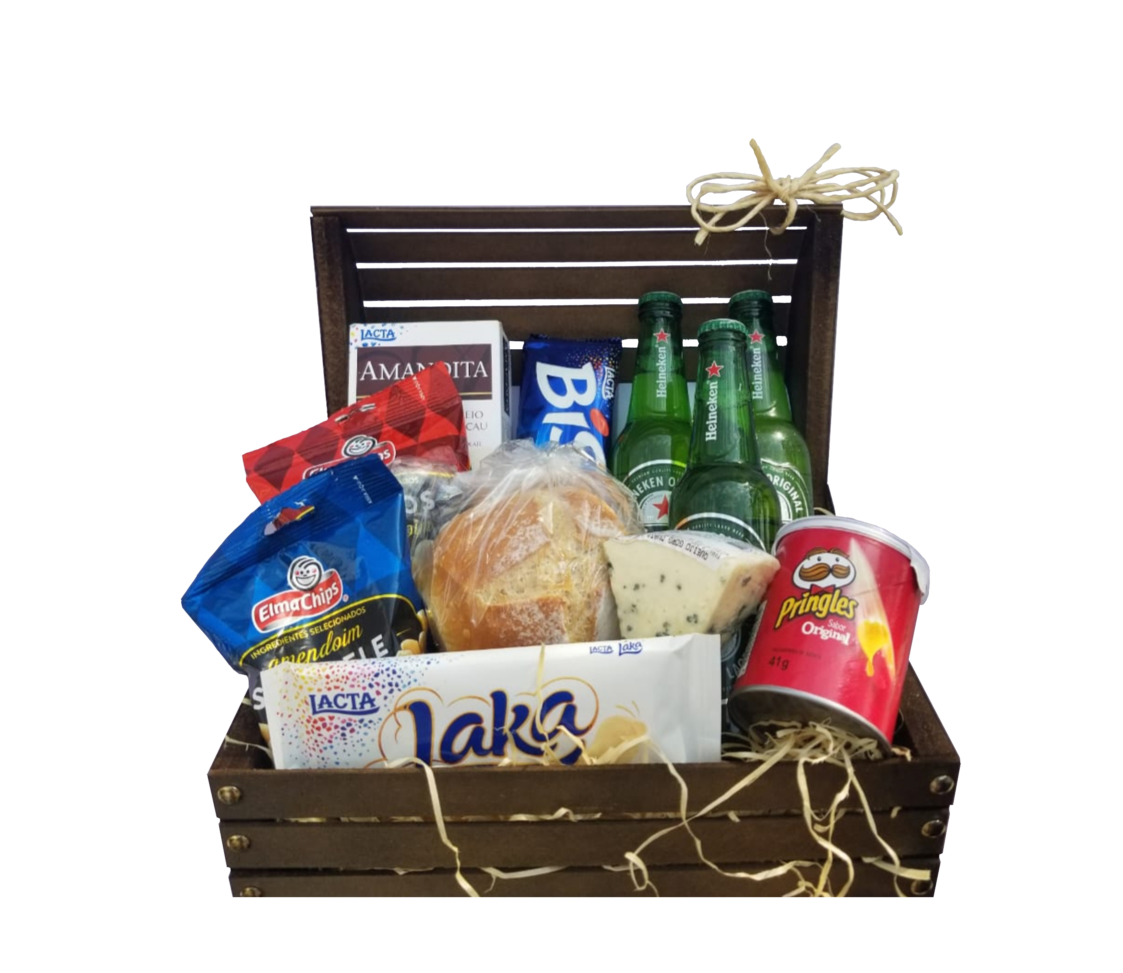 **Cesta entregue em um saco transparente com laço.