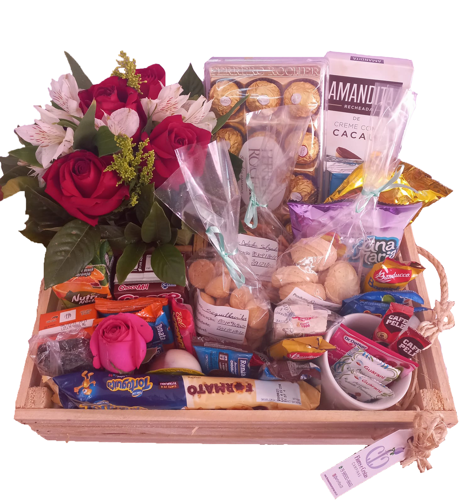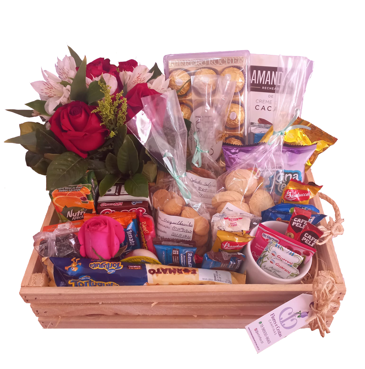 01 Arranjo de Rosas com Cachepô de Madeira ou Vidro.